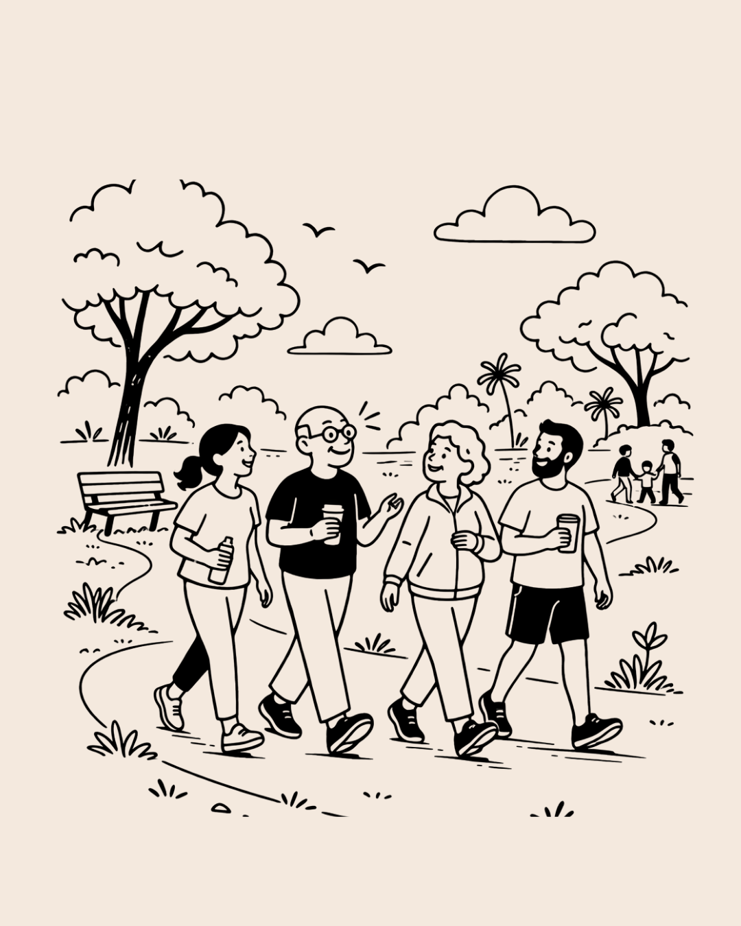 • Begin the day in good company – Start your morning with a relaxed park walk alongside others, setting a calm and connected tone before the day unfolds.